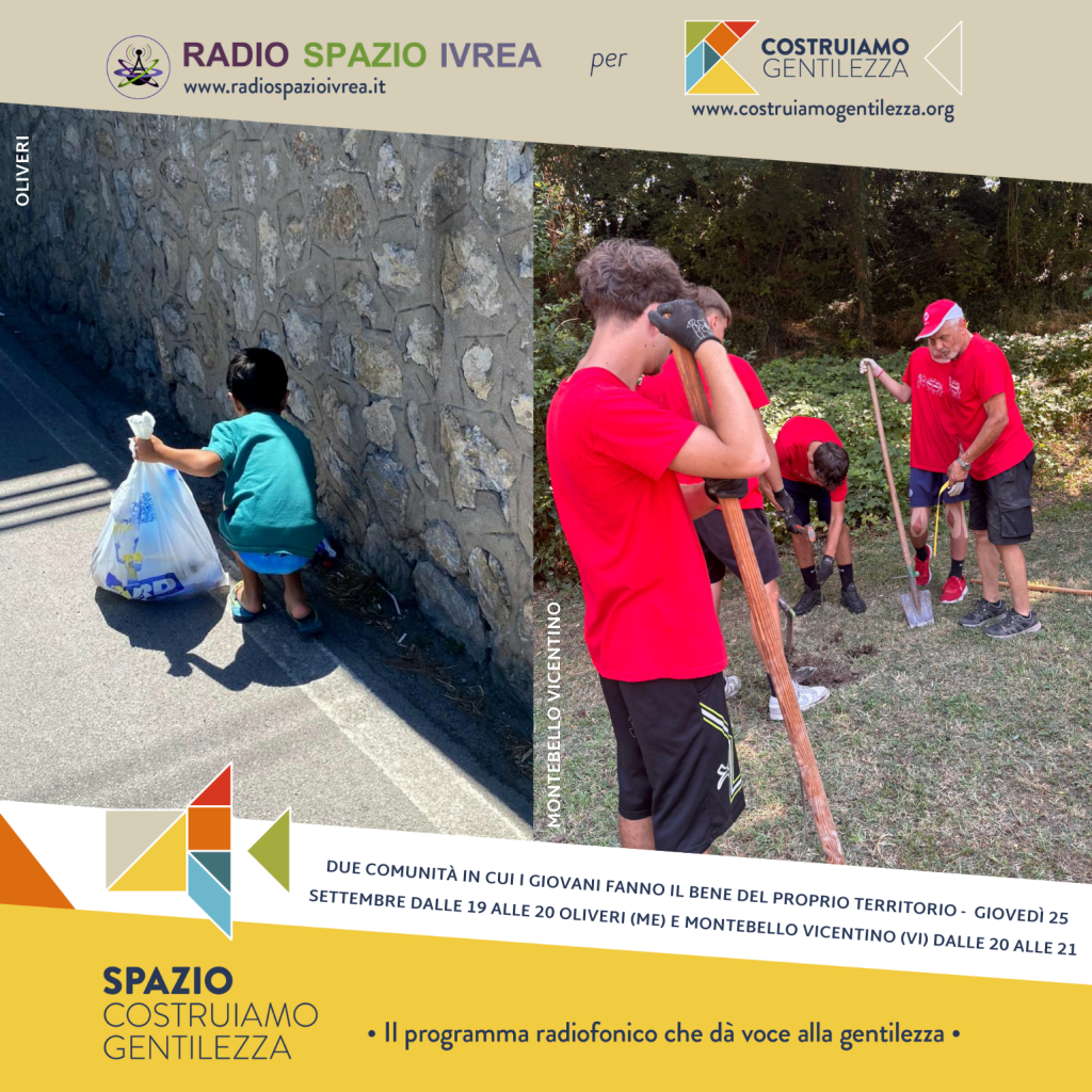 A seguire, dalle 20:00 alle 21:00, il programma darà spazio alla voce dei giovani e degli adulti del Comune di Montebello Vicentino (VI), che durante l’estate hanno preso parte al progetto “Ci sto? Affare fatica”, un’iniziativa che ha visto i ragazzi impegnati in attività di cura e manutenzione del territorio. Ne parleranno in diretta l’assessore alla Gentilezza Anita Perlotto, alcuni giovani partecipanti e i tutor che li hanno accompagnati nel percorso. Anche in questo caso si tratta di una pratica gentile da raccontare, valorizzare e potenzialmente estendere ad altre realtà locali, per offrire ai giovani occasioni di crescita civica durante il tempo libero.